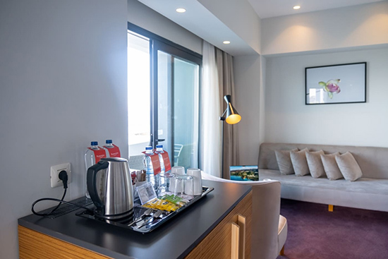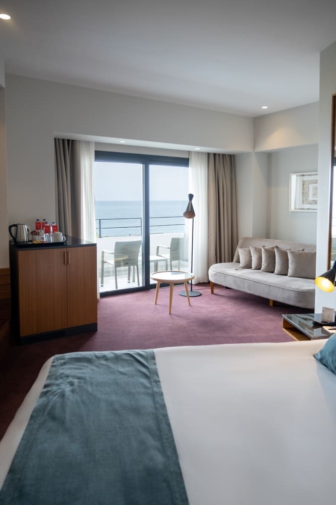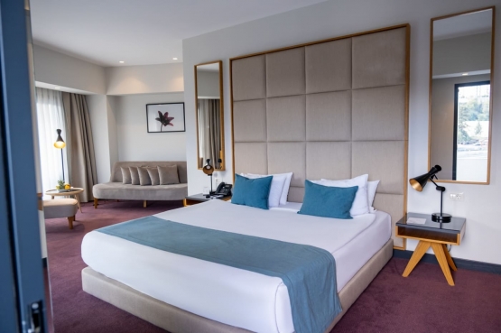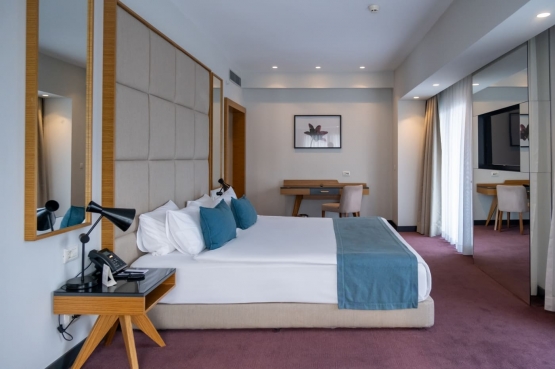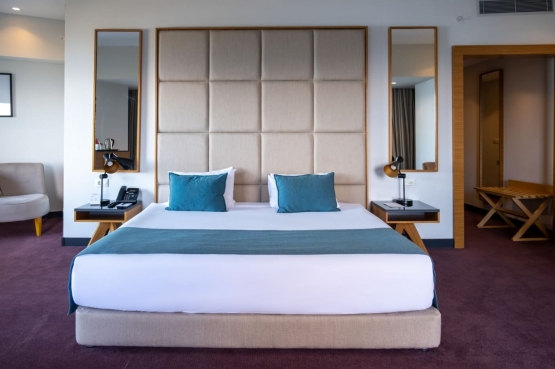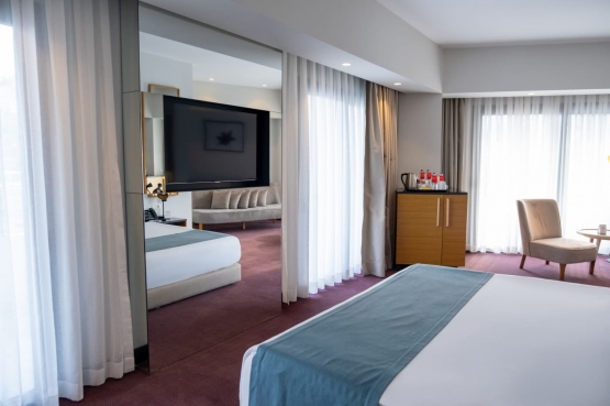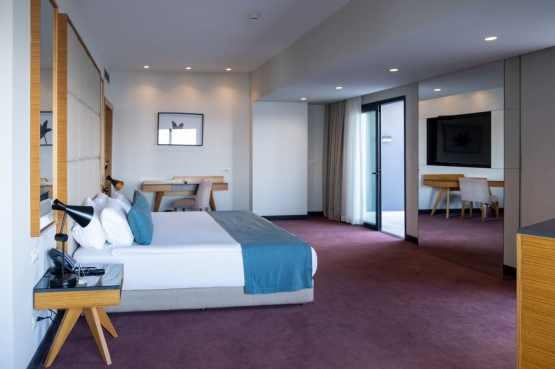 Deniz veya şehir manzaralı, oturma alanı ve yatak odasından oluşan son derece şık Corner suitelerimizde, doğa/deniz manzarasına sahiptir. Corner suit odalar iki kişilik geniş yataklı, balkonlu, çay – kahve set up’ı küvet, tuvalet, merkezi klima sistemi, Smart LED IP TV, direkt aramalı telefon, banyolarda telefon, mini bar, 24 saat oda servisi, çalışma masası, ücretsiz Wi-Fi internet erişimi, elektronik kasa, saç kurutma makinesi, makyaj aynası, terlik ve yastık servisimiz vardır. Odalarımız 40 m²’dir.