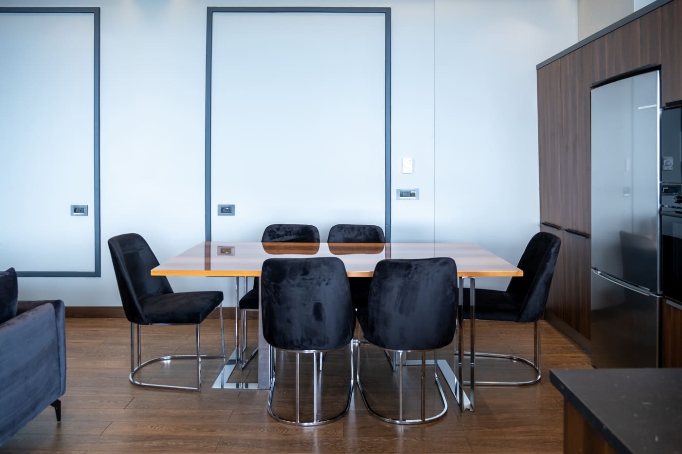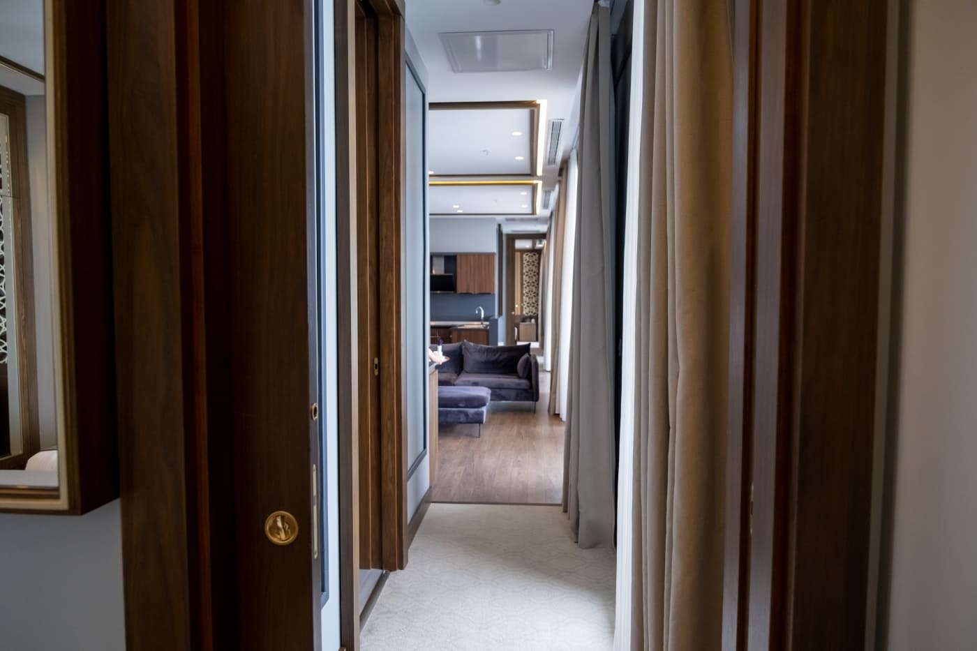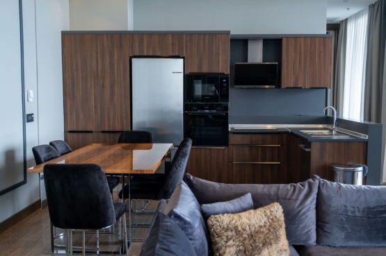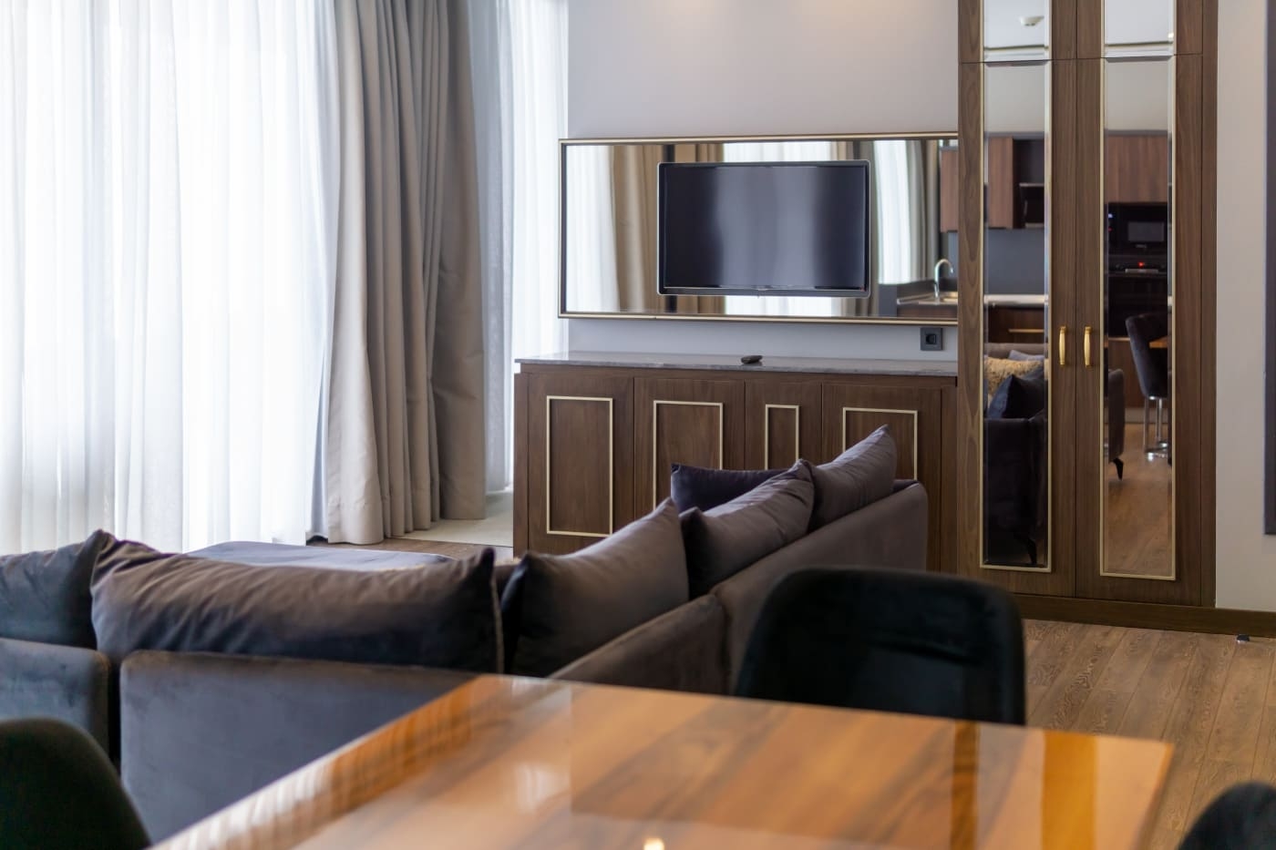Konfor ve toplantı ihtiyaçlarınızı karşılayan, özel ekipmanlarla donatılmış ayrı toplantı bölümü, mutfak ve oturma alanı ile doğa ve deniz manzaralı odalarımız, iki ayrı balkonlu, zemini halı olan odalar, içerisinde rahat bir oturma bölümü, toplantı masası, koltuk ve oturma alanı, mutfak, 2 kişilik geniş yatak, çay – kahve set up’ı, duş, iki ayrı tuvalet, merkezi klima sistemi, Smart LED IP TV, direkt aramalı telefon, banyolarda telefon, mini bar, 24 saat oda servisi, çalışma masası, ücretsiz Wi-Fi internet erişimi, elektronik kasa, saç kurutma makinesi, makyaj aynası, terlik ve yastık servisimiz vardır.