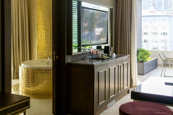 Ramada Plaza By Wyndham Trabzon’da unutulmaz bir balayı deneyimi sizi bekliyor! Özel jakuzisi ve zarif dekorasyonu ile tasarlanan balayı suitimiz, konforu ve romantizmi bir araya getiriyor. Doğa manzarası eşliğinde lüks ve huzuru yaşarken, özel hizmetlerimizle her anınızı daha da özel kılıyoruz. Eşsiz bir konaklama deneyimi için sizi Ramada Plaza By Wyndham Trabzon’a davet ediyoruz.