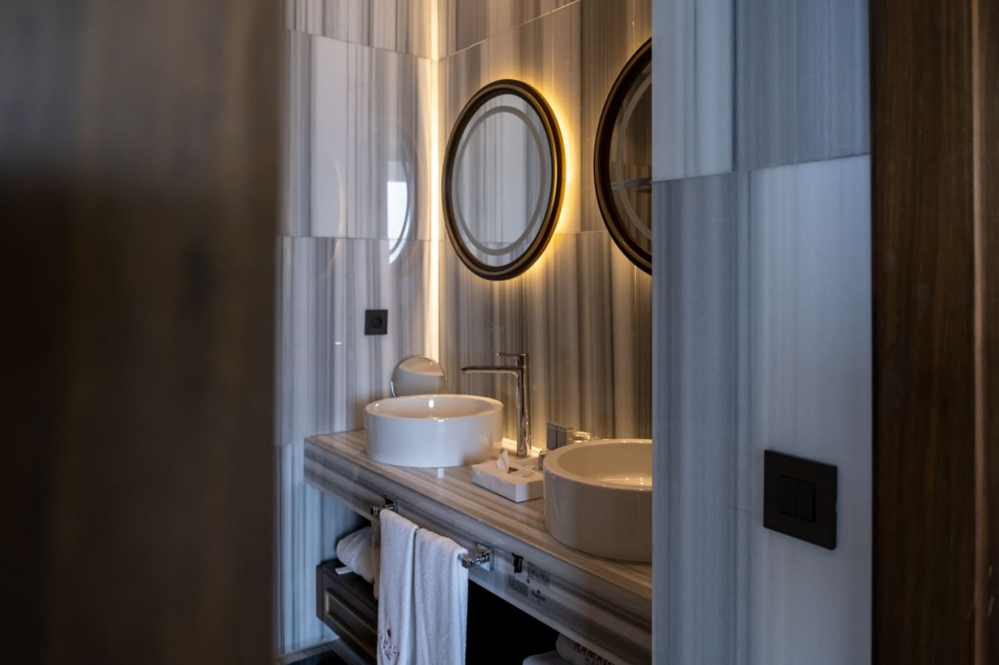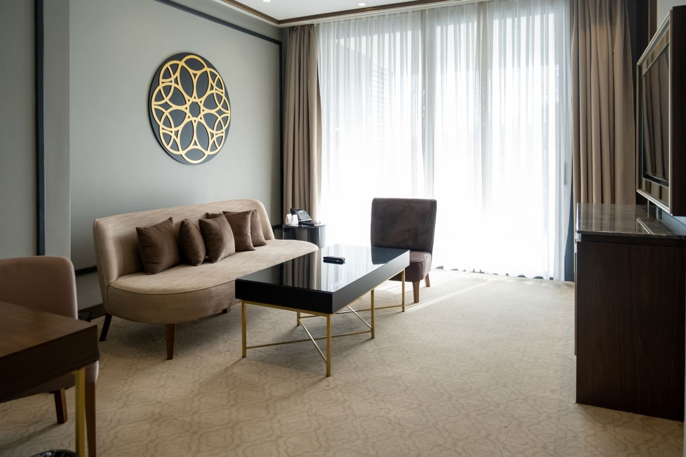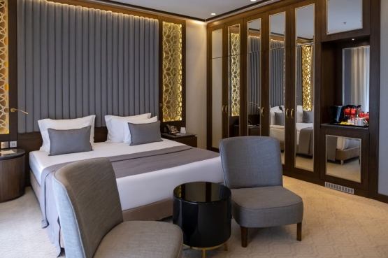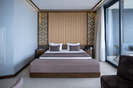 Lüks konfor ihtiyaçlarınız için bir yatak odası ve bir oturma odası olarak dizayn edilmiştir. Karadeniz’i geniş bir açıyla görebileceğiniz odalarımızda, 2 kişilik geniş yatak, çay – kahve set up’ı, merkezi klima sistemi, Smart LED IP TV, direkt aramalı telefon, banyolarda telefon, mini bar, 24 saat oda servisi, çalışma masası, ücretsiz Wi-Fi internet erişimi, elektronik kasa, saç kurutma makinesi, makyaj aynası, terlik ve yastık servisimiz vardır. Odalarımız 60 m²'dir.