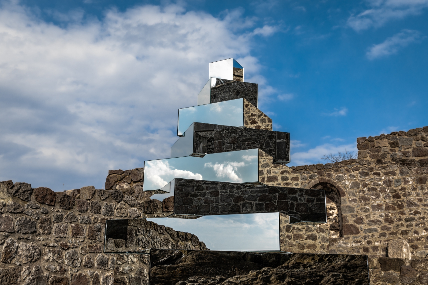 İran asıllı sanatçı, ataerkil toplumlarda kadınlara atfedilmiş kimlik ve dayatılmış sorumlulukların getirdiği toplumsal eşitsizliğin gerçekliğine mecazi anlamda da ayna tutar. Ait olduğu coğrafyanın mit ve geleneklerinden deneyimlediği, kolektif hafızasında kodlanan; kadının başını öne eğmesi gerektiği düşüncesine, tepedeki kilisenin zeminine yerleştirdiği daire şeklindeki “Evocation” isimli gökyüzündeki manzarayı yansıtan daire formundaki ayna ile karşı çıkar. Sanatçı gökyüzünü izleyicinin ayaklarının altına sererek Dünya Emekçi Kadınlar Günü’nü de kapsayan birlik, dayanışma ve üretkenlik mesajlarını verir.