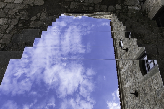 Tarihi mekânın hassas dokusu üzerinde birbirine eklemlenerek güçlü taşıyıcı strüktürlere yapışan aynalar; sanatçının uzun yıllardır ilgilendiği tasavvuf felsefesinin önemli düşünürlerinden Rumi’nin şiirsel anlatımının somut formları olarak karşımıza çıkar. Rumi’ye göre gökyüzüne ulaşmanın yolu sadece kalpten geçmektedir. Öyledir de… Sergiye adını da veren izleyenlerin kolektif yansımalara tanıklık ederek saf benliklerine doğru yolculuğa çıkması ancak ve ancak kalpten olursa mümkün olabilir.