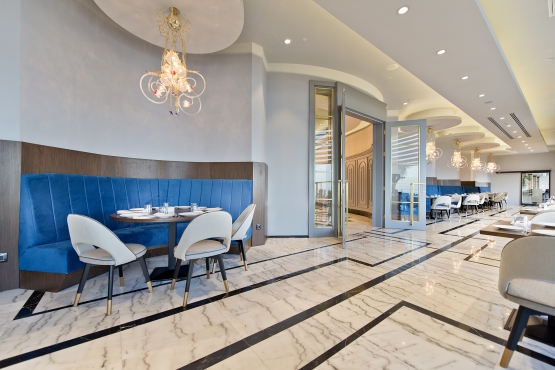 Blue Restaurant, alkolsüz servis sunan şık ve seçkin bir mekân olarak, Karadeniz’in nefes kesen manzarası eşliğinde misafirlerine benzersiz bir deneyim sunuyor. Mavi tonların hakim olduğu otantik konseptiyle huzurlu bir atmosfer sağlayan Blue Restaurant, dünya mutfağından özenle seçilmiş lezzetler ve Uzakdoğu mutfağının ikonik yemeği olan sushi ile damak zevkinizi zenginleştiriyor.